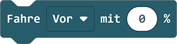 Fahre vorwärts oder rückwärts. Die Geschwindigkeit kannst du zusätzlich in Prozent zwischen 0 (kein Antrieb) und 100 (maximaler Antrieb) wählen.